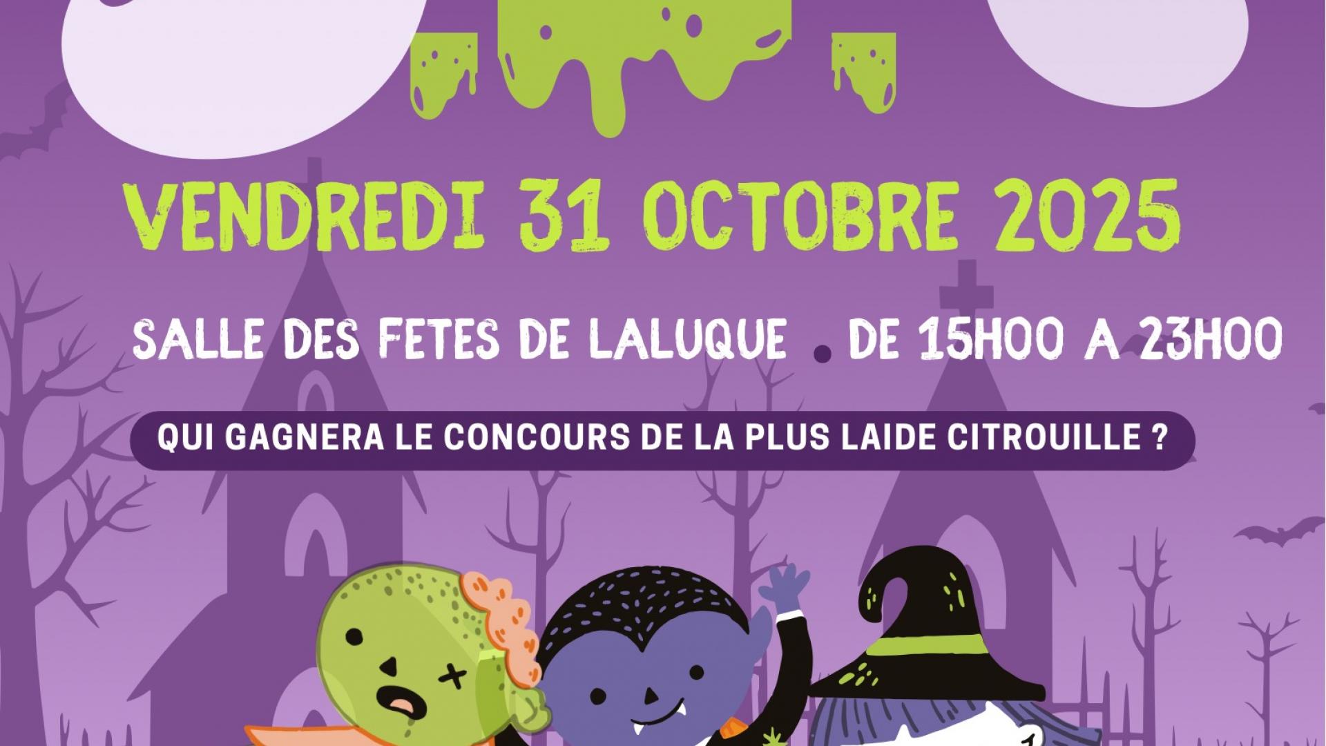 Accueil Laluque Vivre à Laluque Les nouvelles actualités HALLOWEEN Vendredi 31 Octobre 2025 salle polyvalente de 15h00 à 23h00 HALLOWEEN Publié le 10 octobre 2025 / Dernière modification le 10 octobre 2025 HALLOWEEN Publié le 10/10/2025 - Dernière modification le 10/10/2025